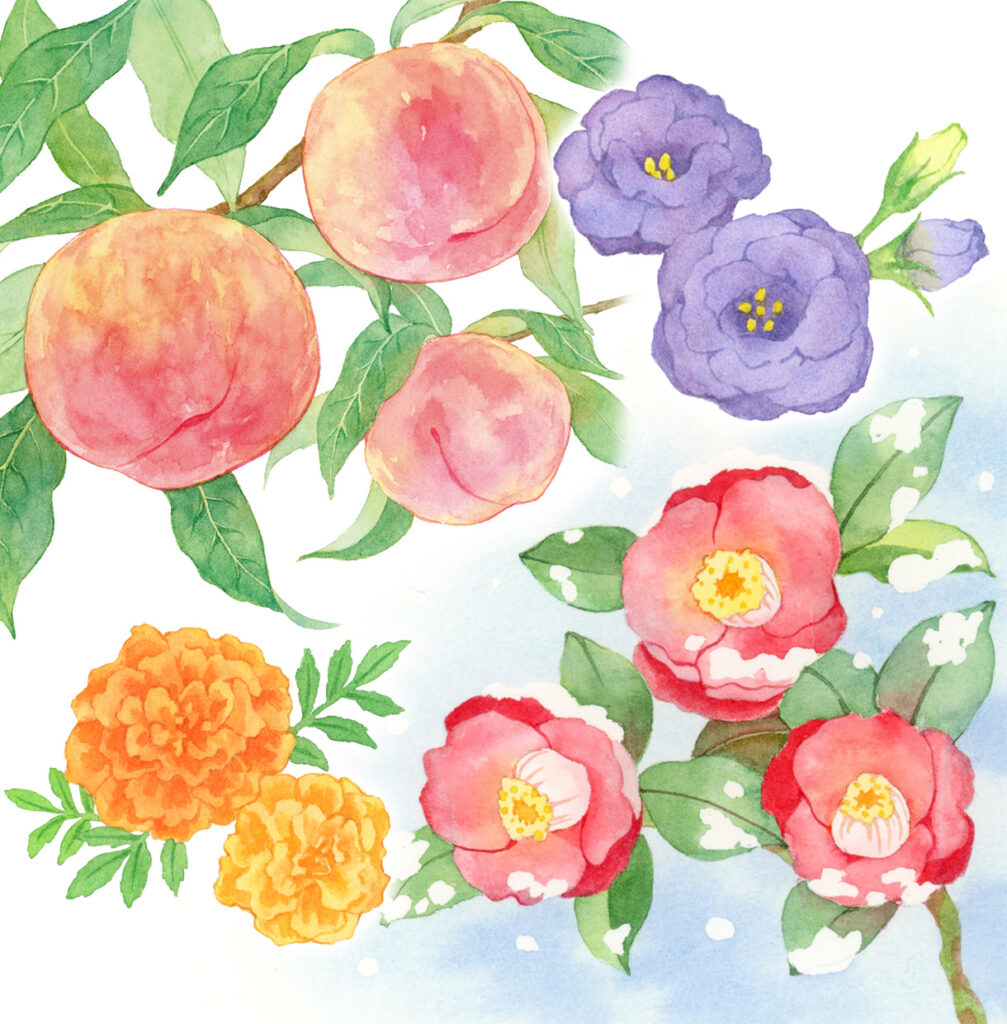 はなやかで情緒ある水彩イラスト制作